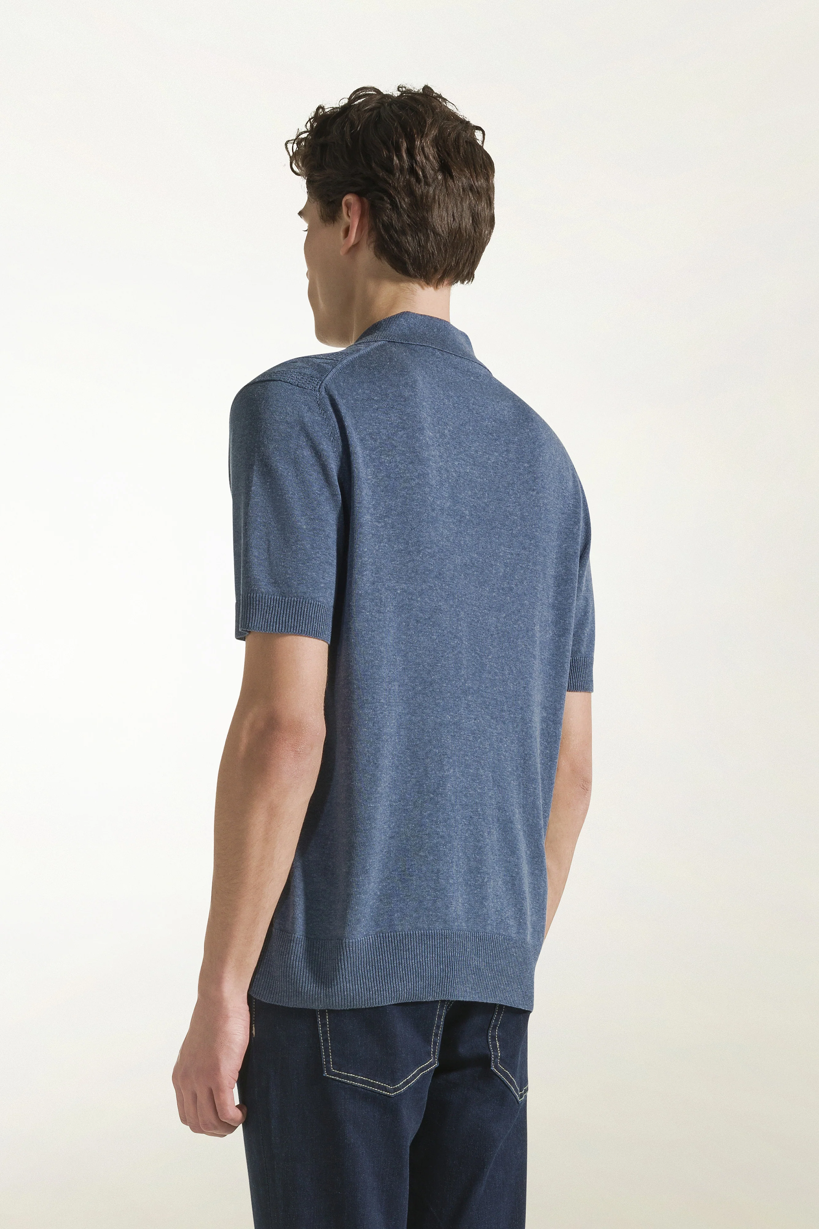 Polo bluette in Sand and Wave Stitch, leggermente traforata e morbida al tatto, fresca e leggera sulla pelle, con un effetto ondulato che dona carattere e comfort estivo.