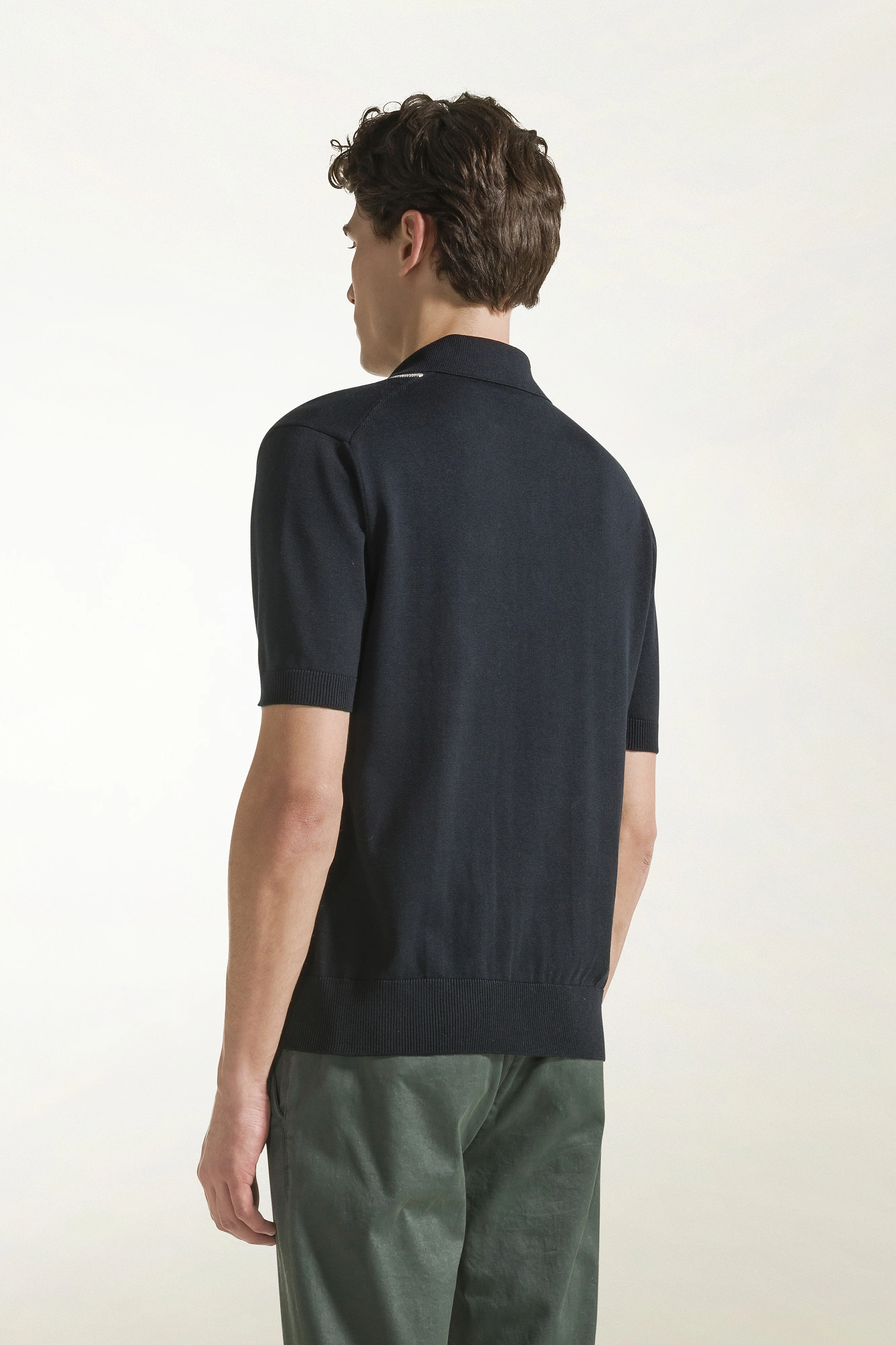 Polo in seta e cotone colore blu scuro