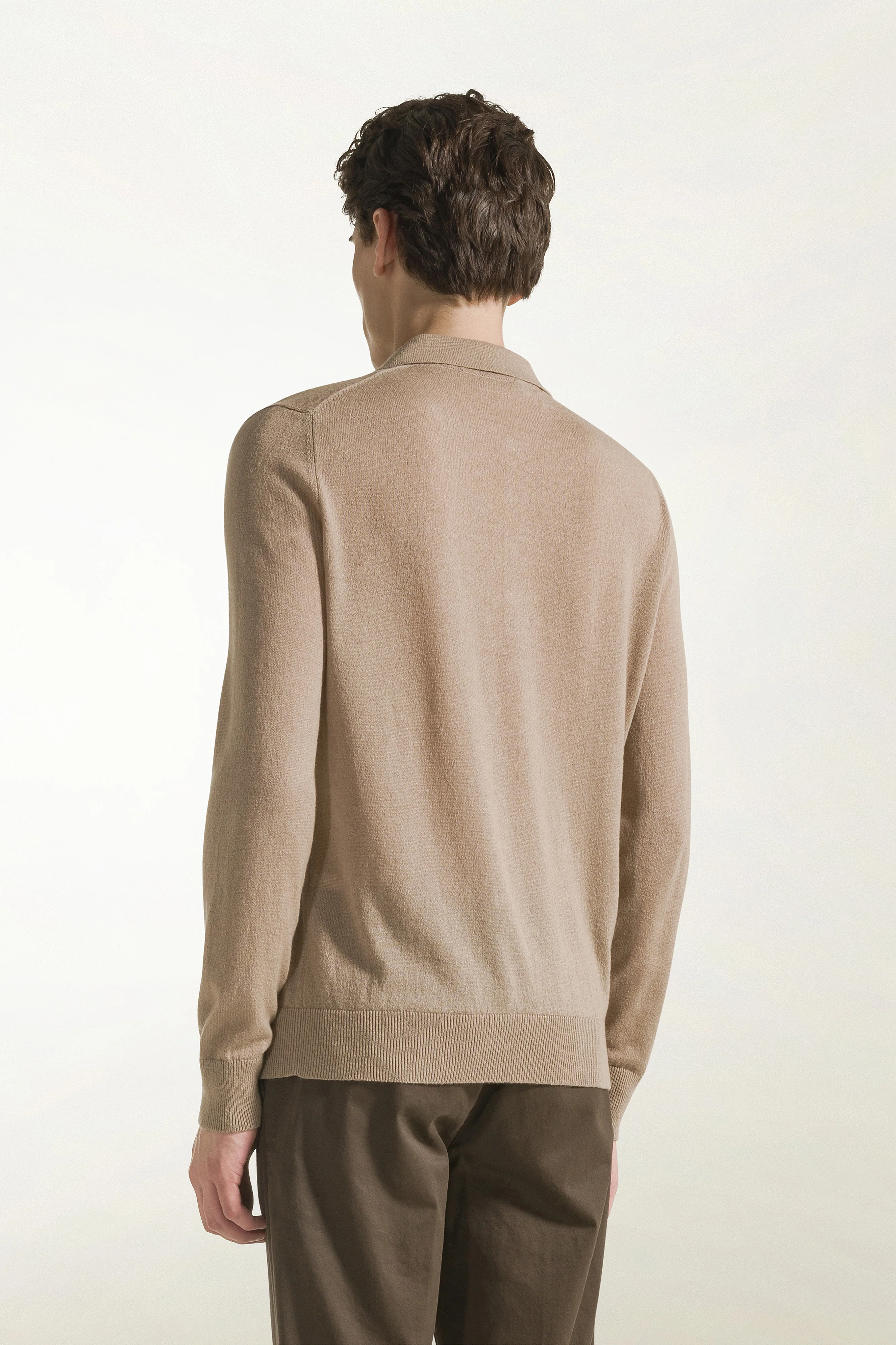 Polo sabbia in Plain Stitch, liscia e piacevole al tatto, leggera e confortevole sulla pelle, perfetta per capi estivi essenziali e raffinati.