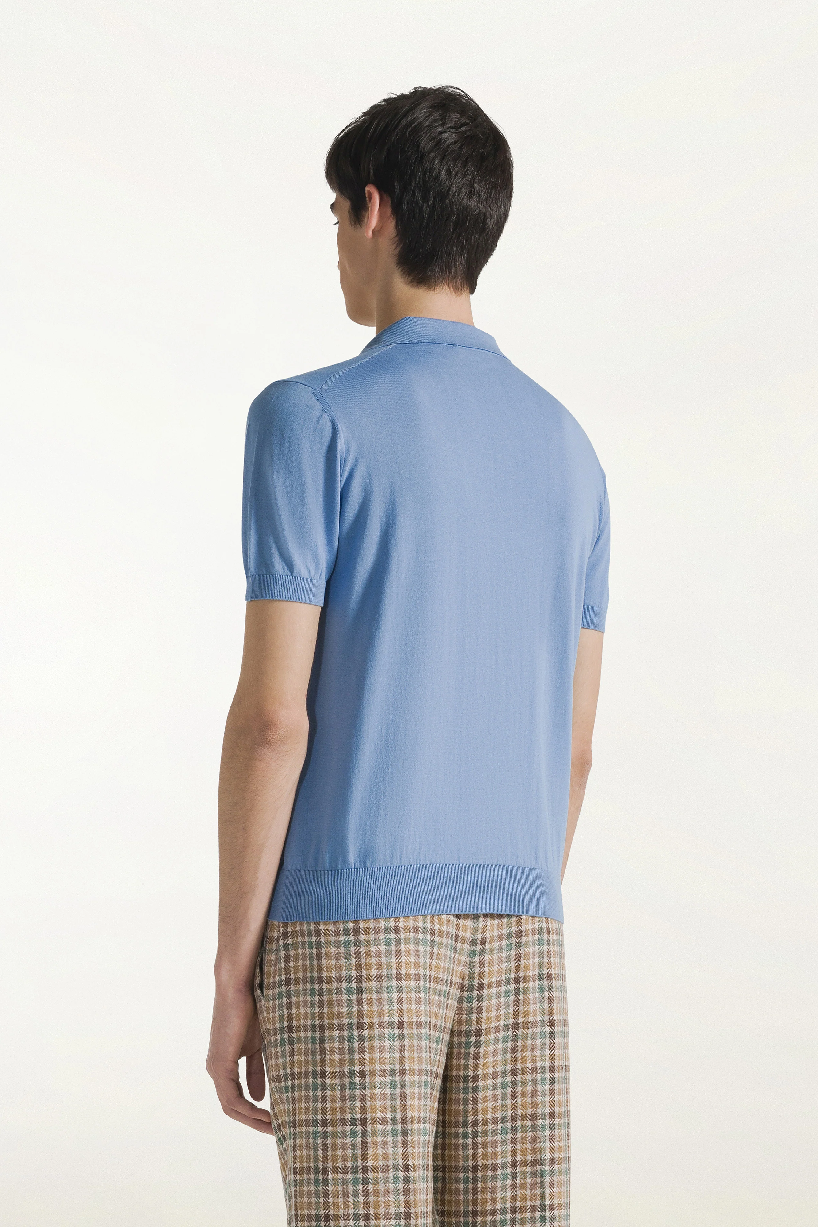 Polo sailor azzurra maniche corte in cotone compact. Vestibilità regolare.