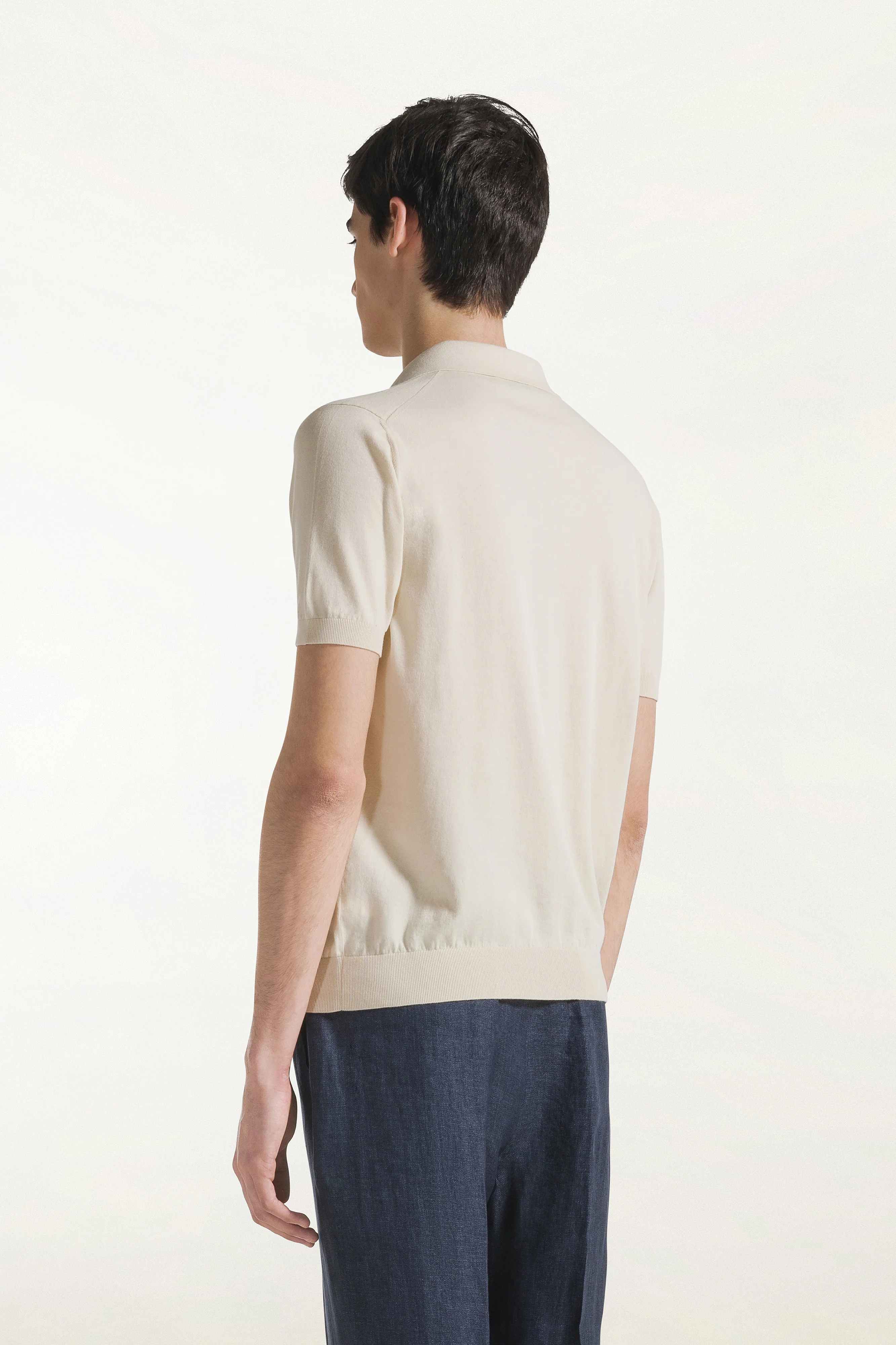 Polo sailor crema maniche corte in cotone compact. Vestibilità regolare.